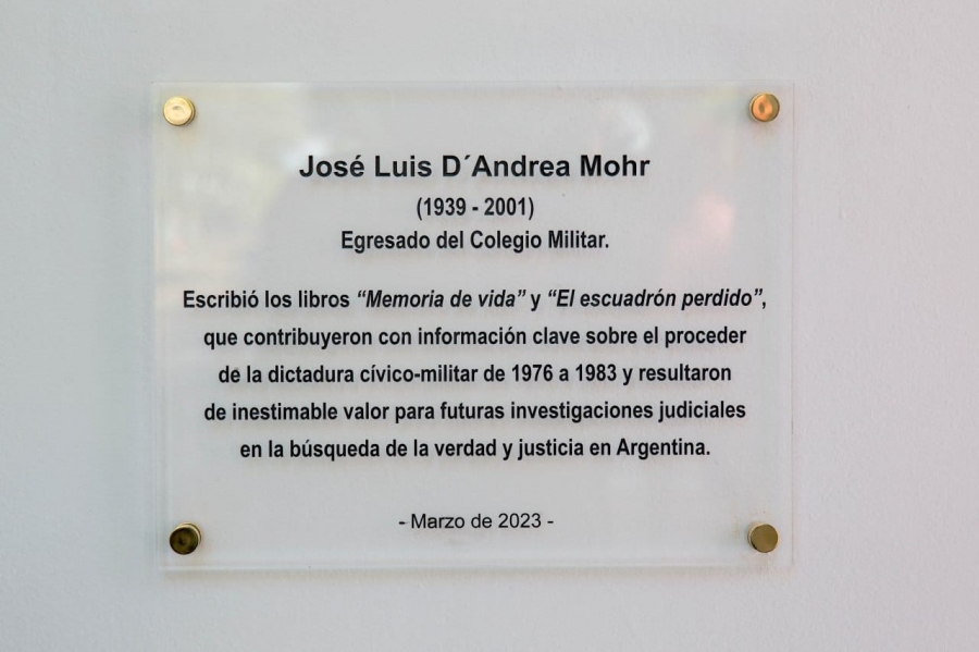 “Quiero hacer mención a un grande del Ejército, a un capitán que investigó los casos de los ‘colimbas’ secuestrados-desaparecidos y los plasmó en un libro “El escuadrón perdido”. Un capitán que cuando era cadete le ordenaron arrastrarse, a lo que se negó diciendo: ‘Yo no soy un gusano’. Años más tarde se siguió negando a disolver manifestaciones, a reprimir a secuestrados. Él sostenía que el honor es el único regalo que un hombre puede hacerse así mismo. Un capitán que dijo públicamente: ‘Entre las Madres de Plaza de Mayo y mis camaradas me quedo con las madres’. Esto va dedicado a ese grande, a José Luis D’Andrea Mohr”.