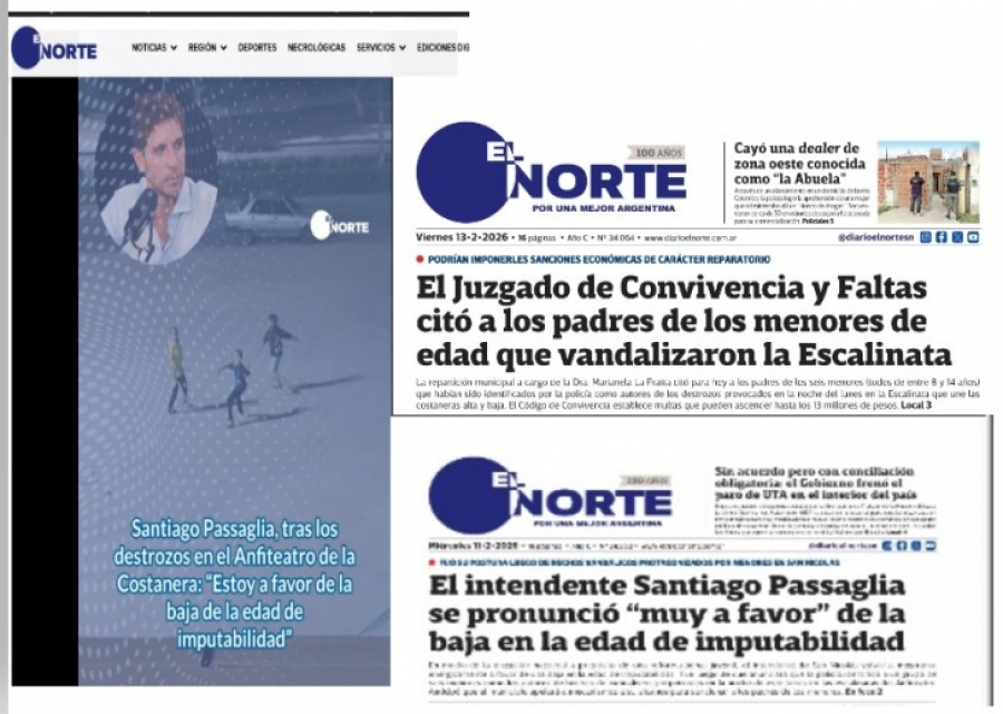 En su diario hicieron público su enojo y le dedicaron todo un espacio para que el intendente caza niños pueda manifestarse “muy a favor”, de la baja de punibilidad. Siguieron el tema, marcaron como el Juzgado de Convivencia y Faltas se ocupó inmediatamente de citar a los padres de los niños acusados, pero nada dijeron —como si no se hubiesen enterado—, de que Santiago Passaglia violó la ley de protección integral de Derechos de Niñas, Niños y Adolescentes y otras normativas, al publicar sus nombres y apellidos y dar el domicilio de uno de los niños.