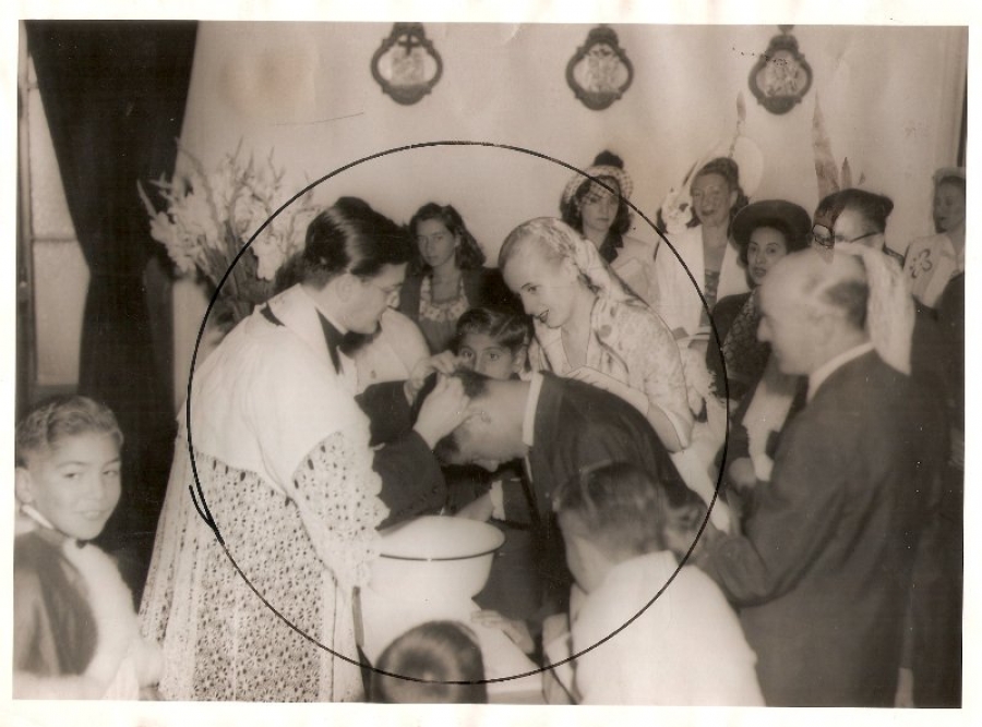 Benítez, sacerdote en ceremonia de bautismo con Evita presente. 20-1-49.